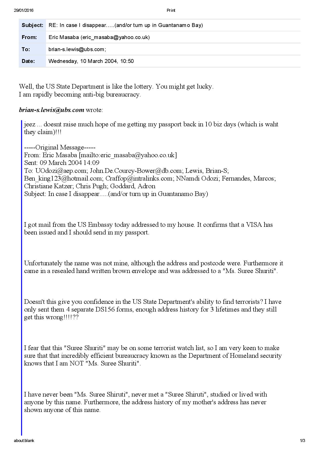 Jan 24An alarming number of international terror plots involving content lifted directly from the emails, SMS and itineraries of Eric Masaba appeared from 2007 - 2012. It is very possible that several innocent men have been framed to keep the ruse going.