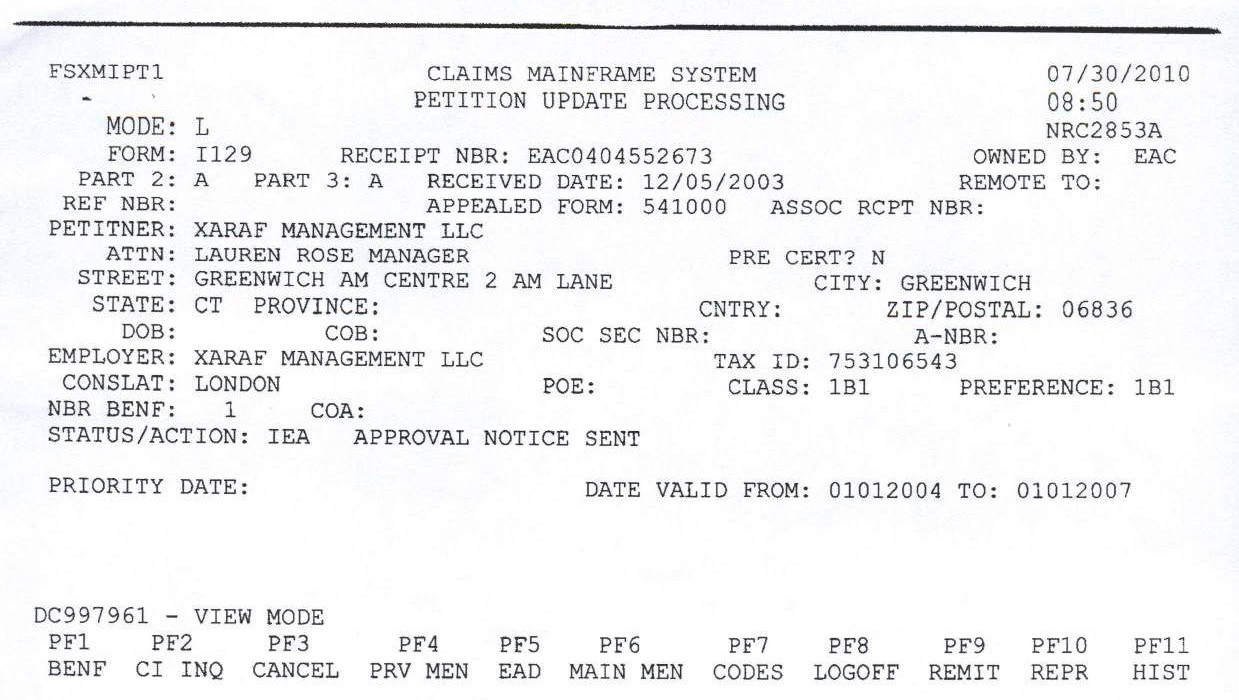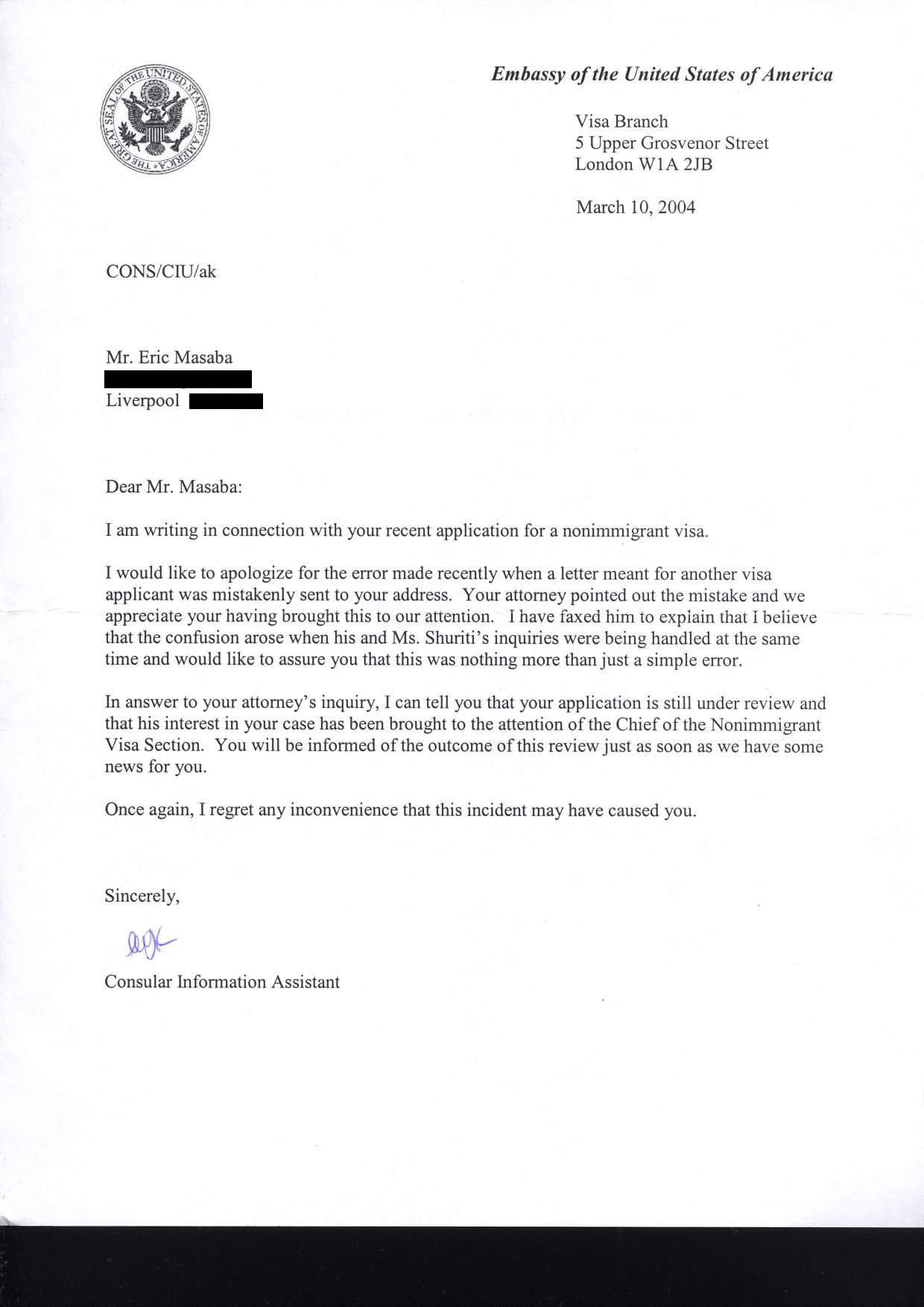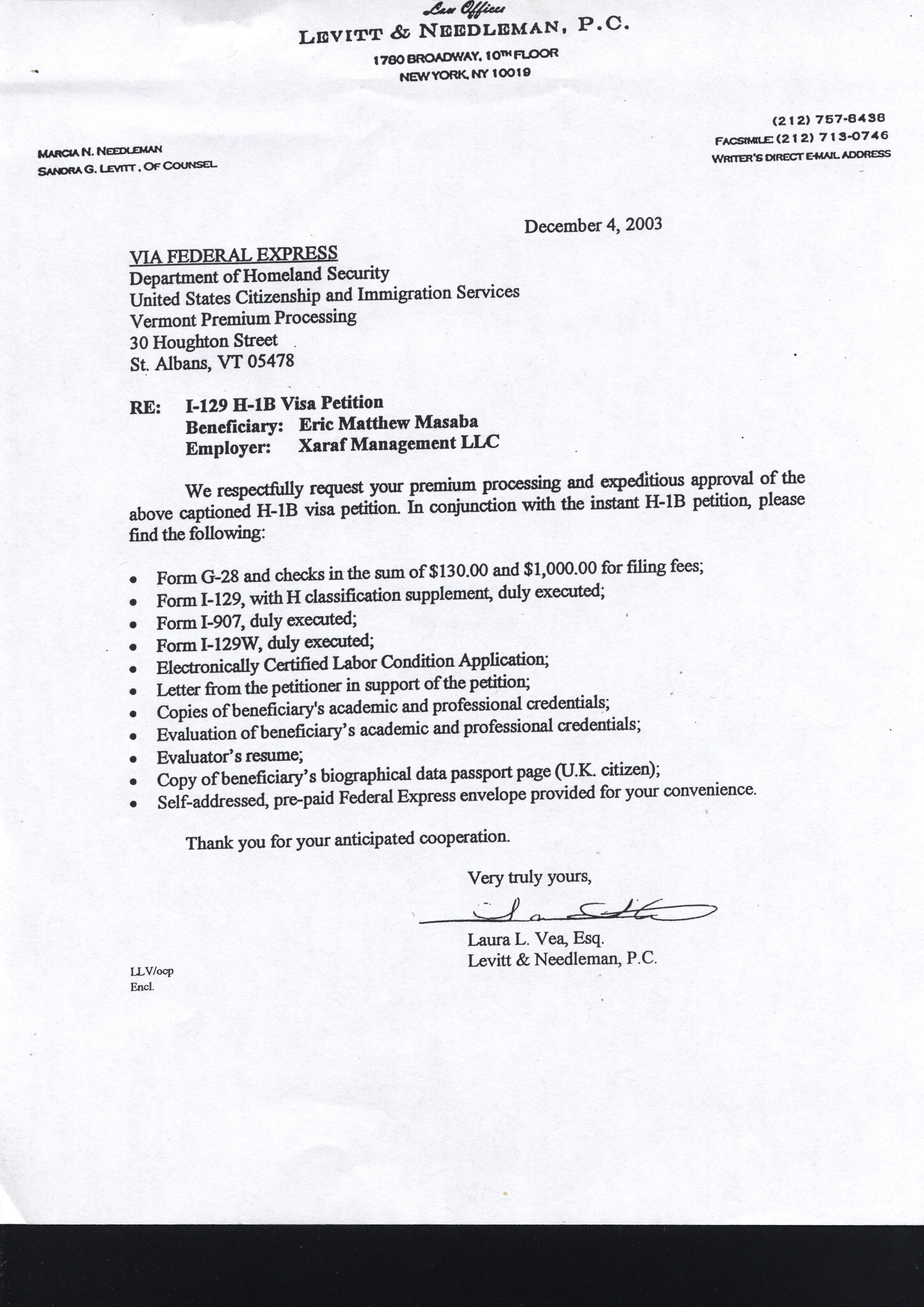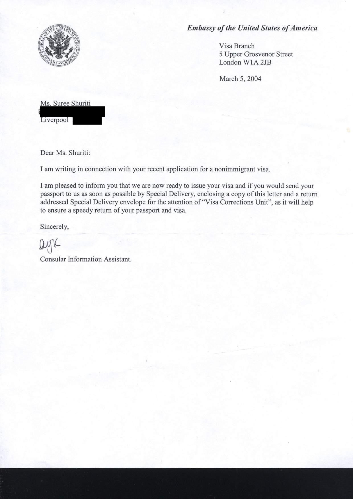 A letter confirming my successful VISA application is received. The top immigration attorney in NYC has prepared and shepherded the application for me, as per her contract from Paloma.